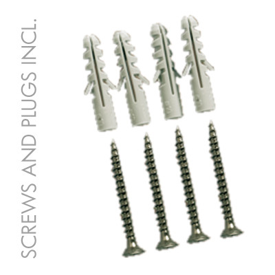 Silbereloxierten Alurahmen mit Ecken auf Gehrung. PS Rückwand in weiß und entspiegelter APET Frontscheibe. Komplett mit Schrauben und Dübeln geliefert.