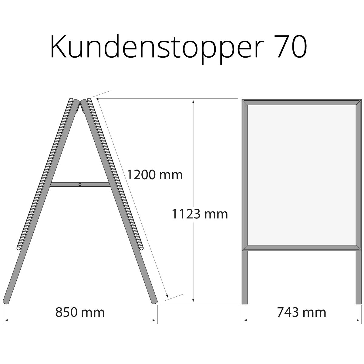Kundenstopper 70: (H/B/T) 1200 x 743 x 850 - Höhe aufgestellt: 1123