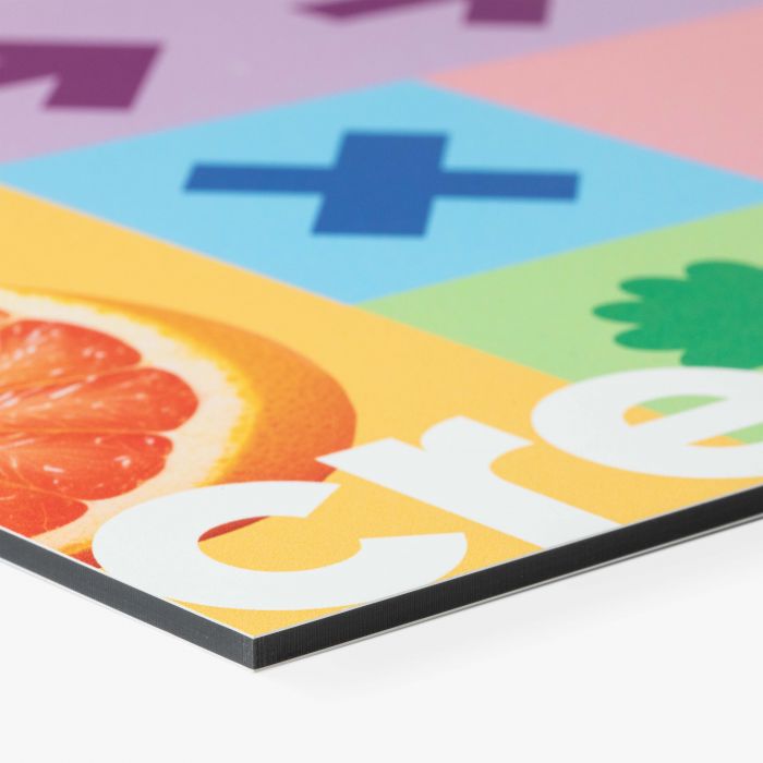• Acrylglas XT - Transparent in 3mm Stärke inklusive Weissdruck, aufkaschiert auf eine 3mm starke ALU - Dibond Platte
