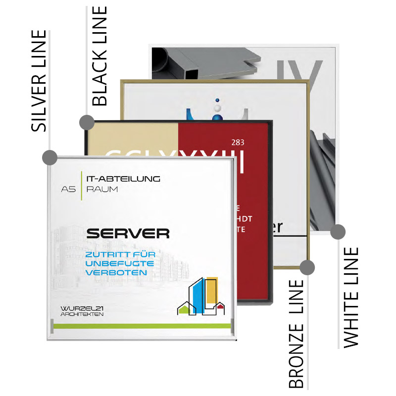 SilverLine aus silber eloxierten Aluminium sowie die Black Line, Bronze Line und White Line machen MADRID zum ultimativen Leit- und Orientierungssystem am Puls der Zeit.
