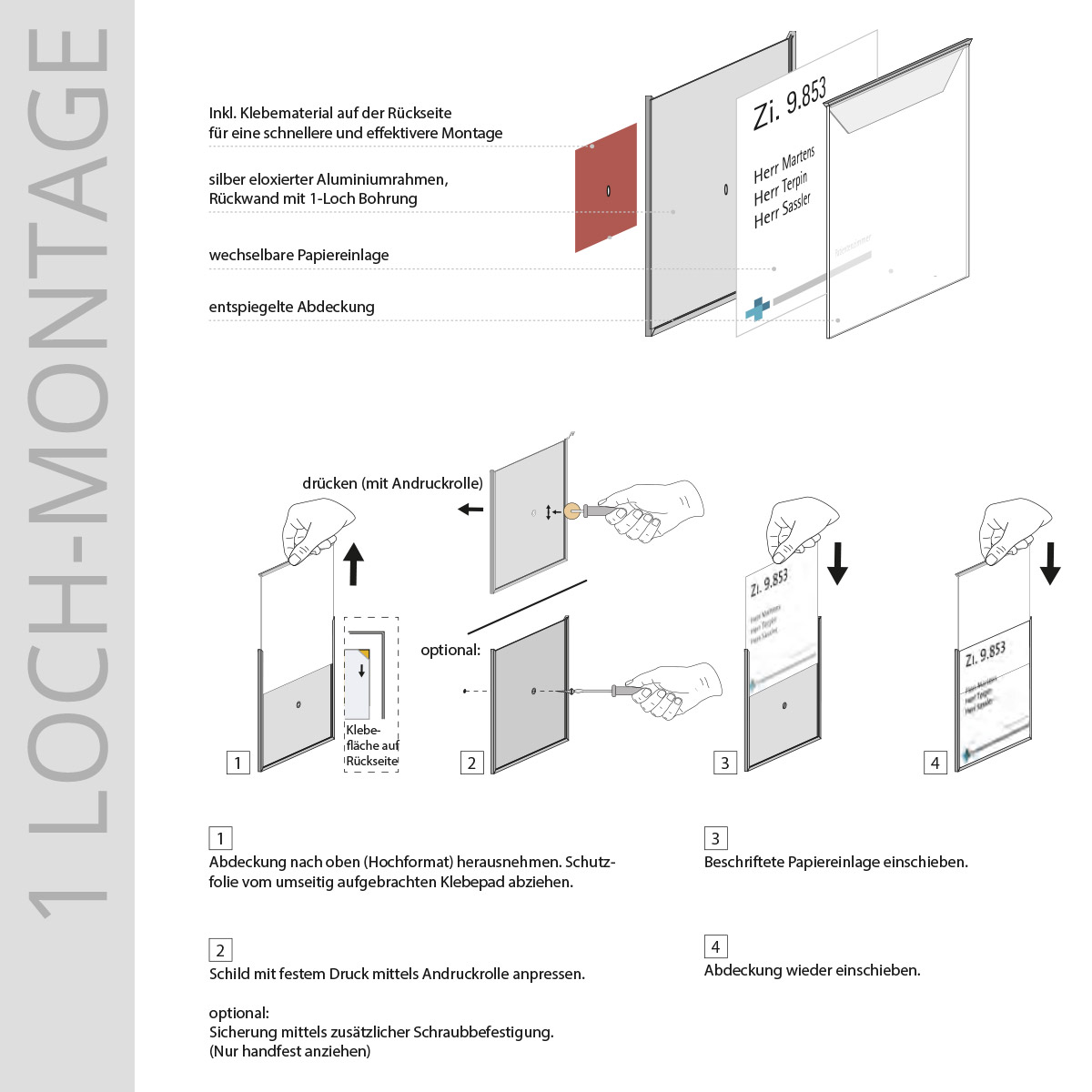 - Schraubmontage bzw. 1-Lochvariante mit Schraub/Klebemontage