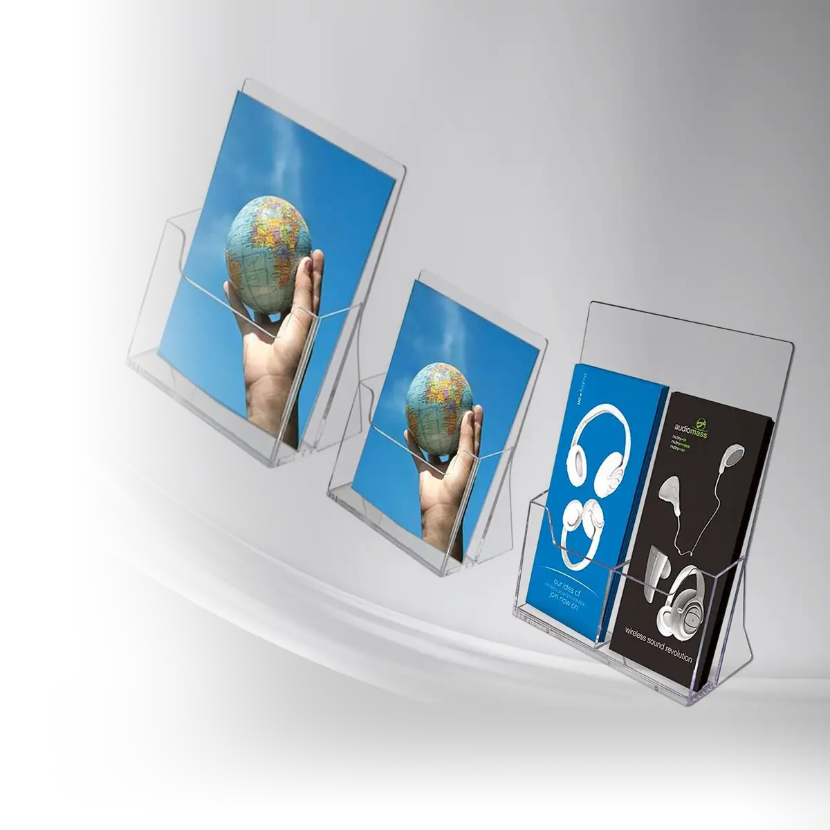 Unsere Prospekthalter aus hochwertigem Acryl sind die ideale Lösung für die Präsentation von Flyern, Broschüren oder Preislisten auf Tischen, Theken oder Empfangspulten. Sie überzeugen durch klare Linien, Stabilität und optimale Sicht auf Ihre Unterlagen.
