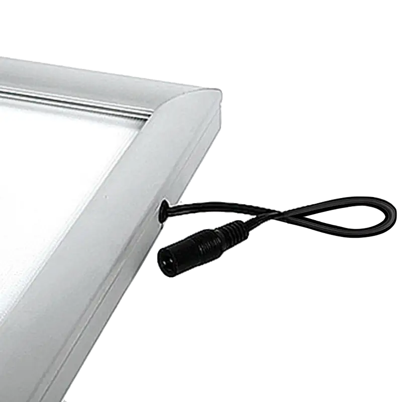 Dank der mitgelieferten Wandaufhängungen kann der Rahmen sowohl vertikal als auch horizontal montiert werden – ideal für flexible Anwendungen. Die Lieferung beinhaltet ein 3,5 m langes Stromkabel samt Netzteil für eine einfache Inbetriebnahme. Setzen Sie Ihre Plakate und Werbebotschaften gekonnt in Szene – stilvoll und professionell!